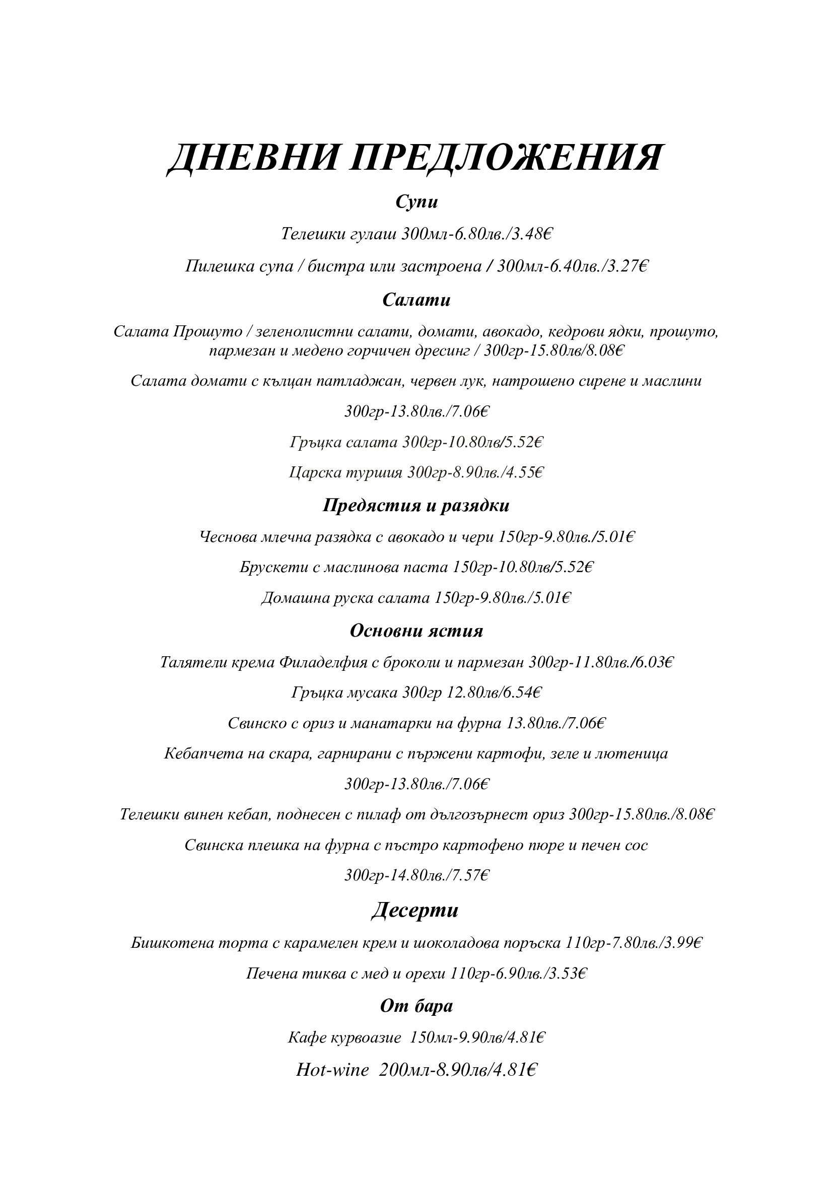 Дневни предложения за 05.11.25г.