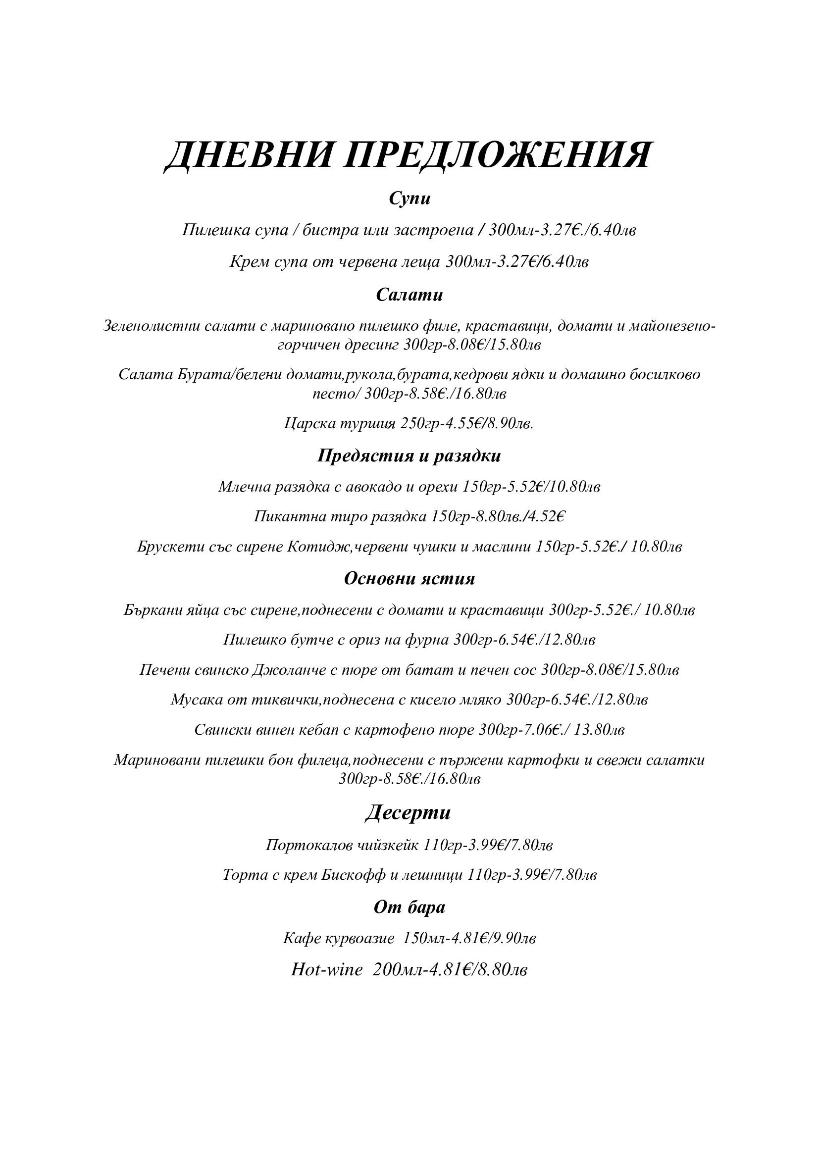 Дневни предложения за 08.01.2026г.