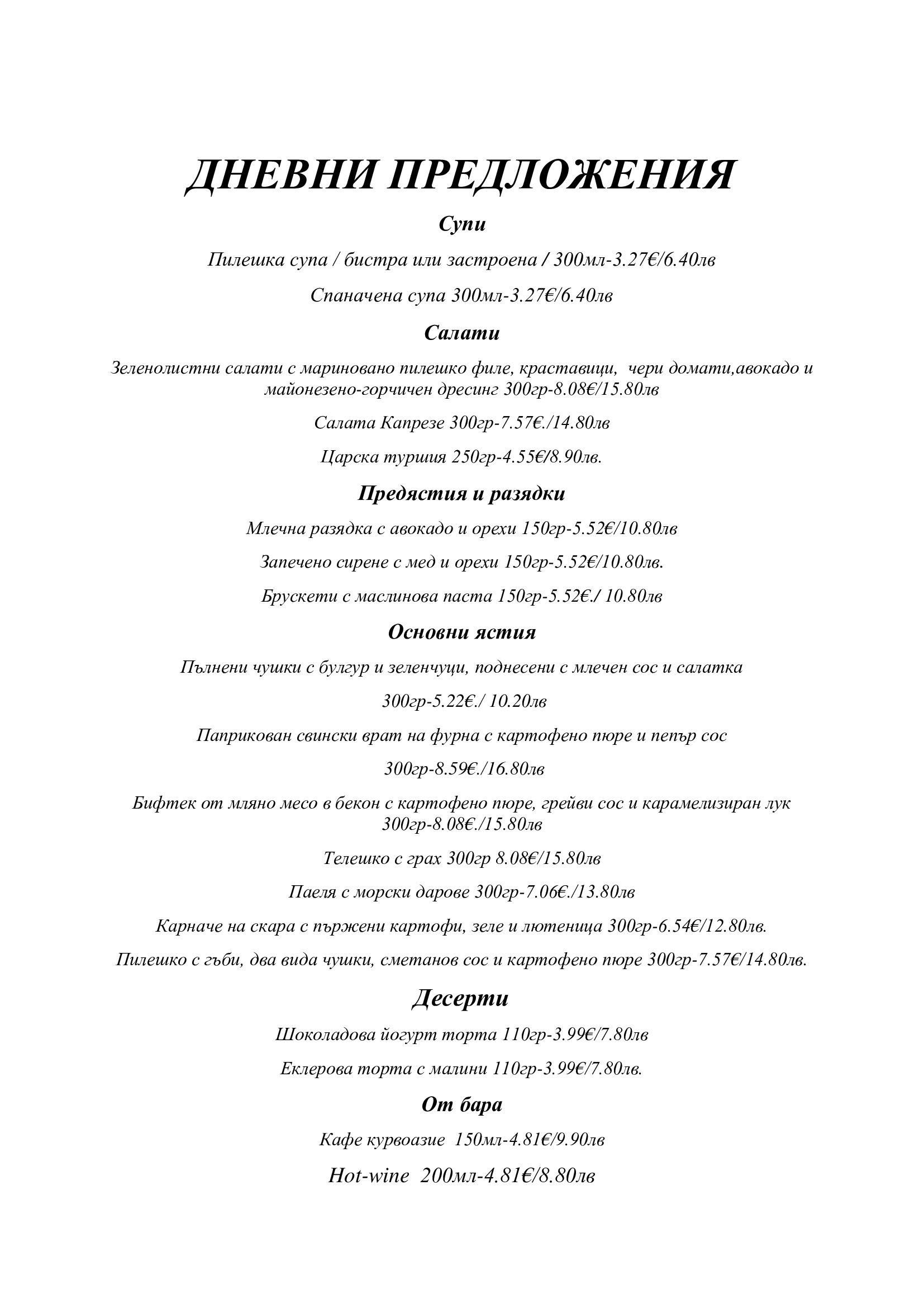 Дневни предложения за 08.01.2026г.